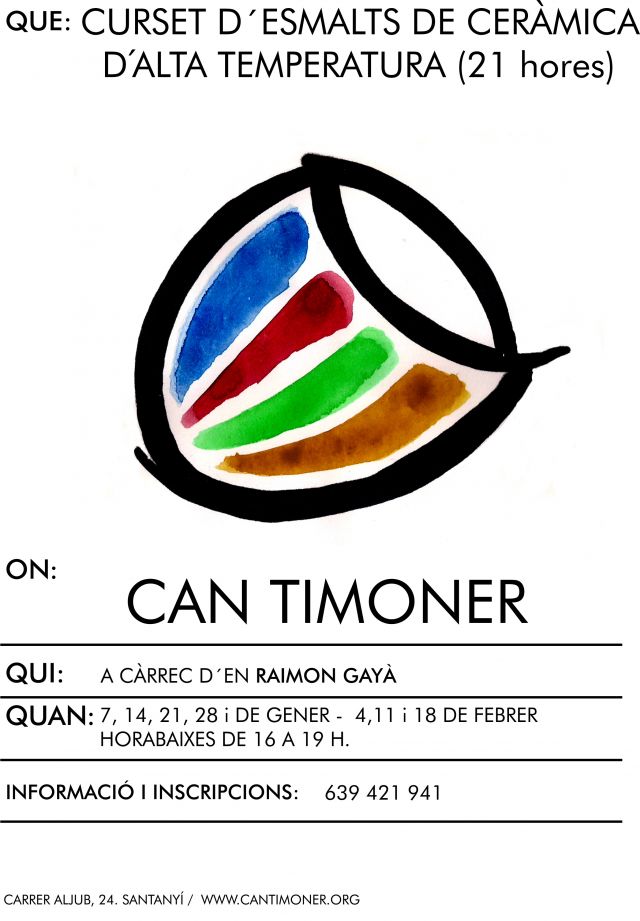 A Can Timoner hem organitzat un curs d’esmalts de ceràmica d’alta temperatura, impartit (de manera desinteressada) per Raimon Gayà, ceramista de Santanyí amb 34 anys de trajectòria professional.