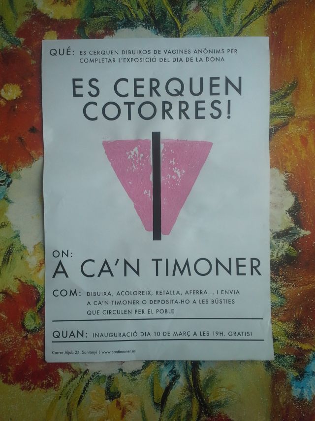 Es cerquen dibuixos anònims de vagines per celebrar el dia de la dona. Ajuda’ns a completar l’exposició! Març dia 10 a les 19 h. inauguració a la sala Velazquez de Ca’n Timoner.